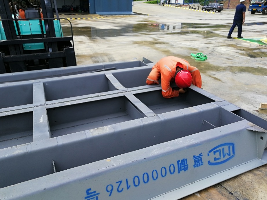 全鋼結(jié)構(gòu)模塊式稱重臺(tái):鋼結(jié)構(gòu)、低平臺(tái)、無(wú)橋欄、模塊化。U型主梁,中間剖分,用螺栓連接,裝拆簡(jiǎn)易,安裝方便。適合20英尺、40英尺,高柜或開(kāi)頂集裝箱運(yùn)輸。